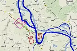 Un braț al Rinului, care trecea în linie dreaptă, i-a permis lui Traian să instaleze Colonia Ulpia Traiana pe malul stâng.