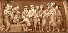 Epidemiile de variolă (1518, 1521, 1525, 1558, 1589), tifos (1546), gripă (1558), difterie (1614) și rujeolă (1618) au bântuit Americile după contactul cu europenii,[36][37] ucigând între 10 și 100 milioane[38] de oameni, până la 95% din populația indigenă a populației native.[39] Instabilitatea culturală și politică la care au contribuit pare să fi fost de un ajutor substanțial în eforturile diverșilor coloniști din Noua Anglie și Massachusetts pentru dobândirea controlul asupra pământurilor fertile și resurselor naturale bogate pe care societățile indigene le folosiseră până atunci.[40]