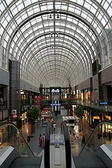 Deschis publicului în 1784, Palatul Royal din Paris a devenit una dintre cele mai importante piețe de desfacere din acest oraș și este considerat primul exemplu de galerie comercială[40]. Palatul Royal era un complex de grădini, magazine și zone de divertisment aflate la parter de-a lungul corpurilor clădirii, sub coloanele originale. Zona se lăuda cu aproximativ 145 de magazine, cafenele, saloane de artă, saloane de coafură, librării, muzee, numeroase chioșcuri cu răcoritoare și două teatre. Magazinele erau specializate în vânzarea unor articole de lux, precum bijuteriile, blănurile, tablourile sau mobila, fiind special concepute pentru a-i atrage pe cei bogați. Comercianții care își desfășurau activitatea la palat au fost printre primii din Europa care au renunțat la troc și au adoptat prețuri fixe, scutindu-și astfel clientela de agitația produsă de sistemul schimbului de mărfuri. Magazinele erau prevăzute cu geamuri mari la exterior, care le permiteau membrilor clasei de mijloc să se uite la vitrine și să viseze chiar și atunci când nu își puteau permite produsele scumpe de acolo. Astfel, Palatul Royal a devenit unul dintre primele exemple ale unui nou stil de galerie comercială, frecventat atât de aristocrație, cât și de clasele de mijloc. Acesta a devenit cunoscut drept un loc în ale cărui saloane, cafenele și librării se puteau purta conversații sofisticate, dar și ca un loc frecventat de soldați în permisie și prostituate, multe dintre acestea având chiar apartamente închiriate în clădire[41]. Galeriile Burlington (Burlington Arcade) din Londra, deschise în 1819, s-au impus de la bun început drept un loc elegant și exclusivist. Printre alte galerii notabile din secolul al XIX-lea se numără Les Galeries Royales Saint-Hubert din Bruxelles, inaugurate în 1847, Çiçek Pasaji din Istanbul, deschis în 1870 sau Galleria Vittorio Emanuele II din Milano, deschisă pentru prima dată în 1877. Galeriile comerciale au fost precursoarele centrelor comerciale moderne.