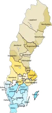 - Skaraborg län + Göteborg și Bohus län + Älvsborg län (unit ca Västra Götalands län în 1998)