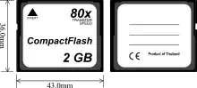 - CompactFlash II (Type II) - aceleași specificații ca cele Tip I, dar sunt mai groase: 43 × 36 × 5 mm.