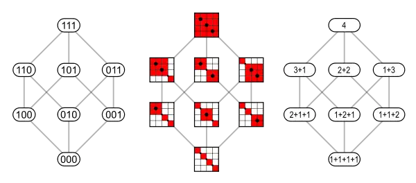Din această formulă rezultă că numărul de compoziții slabe ale lui n în exact k părți este egal cu numărul de compoziții slabe ale lui k−1 în exact n+1 părți.