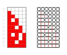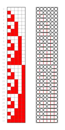 Plasarea fie a unui semn plus, fie a unei virgule în fiecare dintre cele n−1 casete ale matricei