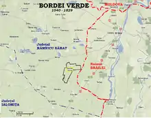 Teritoriul actualei comune Bordei Verde s-a situat de-a lungul întregii perioade medievale la frontiera estică a Țării Românești cu Imperiul Otoman. După 1540, județul Brăila dispare din catagrafiile Țării Românești, ca urmare a anexării Brăilei de către Imperiul Otoman, care a organizat în jurul orașului raiaua Brăilei,[40] ce ocupa mai bine de jumătate din teritoriul fostului județ. Satele rămase în Țara Românească aveau să fie înglobate în județul Slam Râmnic.[41]:p. 275