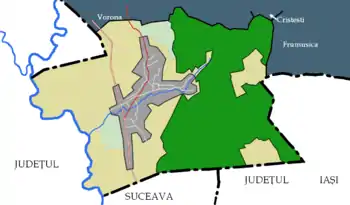 - - la vest: teritoriul administrativ al comunei Liteni si Dolhasca