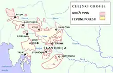 Ascensiunea lor rapidă a continuat după Bătălia de la Nicopole din 1396 împotriva Imperiului Otoman, în care contele Herman al II-lea de Celje a salvat viața regelui Ungariei, Sigismund de Luxemburg, fiul împăratului Carol al IV-lea. Drept recompensă regele a dăruit familiei (1397–1399) orașul Varaždin, comitatul Zagorje și multe alte domenii în Croația.[3] În 1401 conții de Celje se numărau printre susținătorii lui Sigismund de Luxemburg împotriva magnaților maghiari. În 1405 alianța lor cu Casa de Luxemburg a devenit mai strânsă prin căsătoria fiicei lui Herman al II-lea, Barbara de Celje, cu regele Sigismund.[3] În 1418 contele Herman al II-lea a moștenit domeniile din Carintia și Carniola ale conților de Ortenburg care muriseră fără a avea moștenitori.
