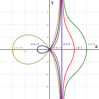 Aceste expresii au pentru a ≠ 0 o asimptotă x = 1. Punctul cel mai îndepărtat de asimptotă este (1 + a, 0). Pentru a < −1 (0,0) este un nod.