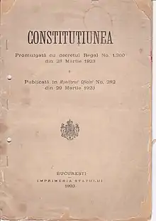 Constituția din 1923 a afirmat cadrul constituțional actualizat al Regatului României, după schimbările sociale și economice, date de Marea Unire, dezvoltarea economică și reforma agrară.