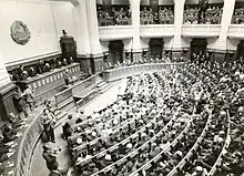 Ședință a Consiliului de Stat din mai 1969, cu Nicolae Ceaușescu la dreapta. La dreapta lui este prim-ministrul Ion Gheorghe Maurer. „Președintele prezidează Consiliul de Stat și prezidează ședințele Consiliului de Ministri atunci cînd apare necesar". [17]