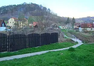 Zidul de apărare a fost ridicat la începutul secolului al XVI-lea. Pe colțul de nord se află un turn aproape pătrat pe două niveluri, prevăzut cu masiculiuri asemănătoare celor de la Biertan. Un astfel de turn se afla și pe colțul sud-vestic. De-a lungul zidului au fost construite cămări de provizii, ulterior demantelate .