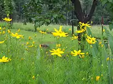 - Coreopsis grandiflora, are aspect de tufă, înălțimea de aproximativ 40 cm, cu flori galben deschis