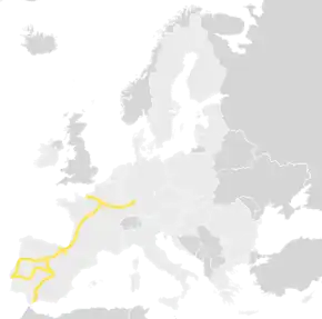 - Aveiro – Valladolid – Vitoria – Bergara – Bilbao/Bordeaux – Paris – Le Havre/Metz – Mannheim/Strasbourg