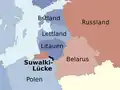 Breșa Suwalki (evidențiată în negru), aflată între Polonia și Țările Baltice
