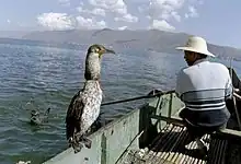 În Vietnam, pescarii cresc aceste păsări în captivitate, folosindu-le pentru pescuit. Cu ajutorul unui laț fixat în jurul gâtului pescarii se asigura că pasărea nu va înghiți complet peștele. Fiind excelenți pescari și scufundători, cormoranii pot prinde un pește în mai puțin de un minut. Cormoranii sunt răsplătiți cu resturile de pește.