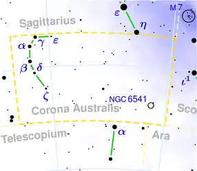 Harta constelației Coroana Australă (click pentru mărire)