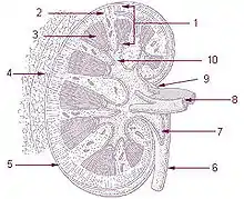 - Cortexul renal, aflat între capsula renală și medula renală; ajută la ultrafiltrarea renală.