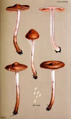 - Mordecai Cubitt Cooke „Cortinarius unimodus”, în: „Grevillea”, vol. 16, 1887, p. 45