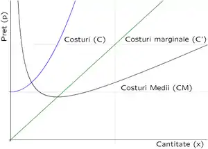 Aceasta corespunde, în mod matematic, punctului de intersecție a costurilor marginale C' cu costurile medii .