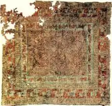 Covorul Pazyryk este considerat ca fiind cel mai vechi covor din lume.[4] Câmpul său central este de culoare roșu închis și are două margini largi, una reprezentând o căprioară și cealaltă un cal persan.