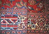 - margine de hérati: este diferită de motivul hérati de pe câmp. Este compusă dintr-o alternanță de rozarii, de flori și de ramuri înflorate.
