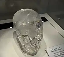Se pretinde că multe cranii de cristal sunt precolumbiene, de obicei atribuite civilizațiilor aztece sau maya. Arta mesoamericană are numeroase reprezentări de cranii, dar niciunul dintre craniile din colecțiile muzeului nu provine din săpături documentate.[7] Cercetările efectuate pe mai multe cranii de cristal la Muzeul Britanic în 1967, 1996 și 2004 arată că liniile care marcau dinții (aceste cranii nu aveau maxilar separat, spre deosebire de craniul Mitchell-Hedges) au fost sculptate folosind echipamente de bijutier (unelte rotative) care s-au dezvoltat în secolul al XIX-lea, făcând incertă o origine precolumbiană a acestora.[8]
