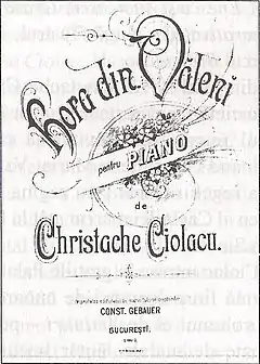 - Hora din Văleni, pian solo, Editura C. Gebauer, București, 2 p. și Editura Jean Feder, București, 2 p.
