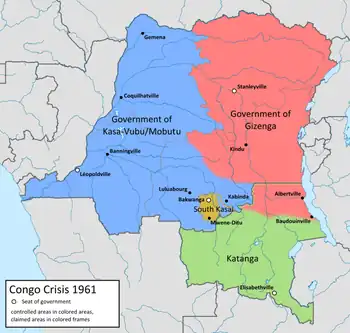 Criza a avut ca rezultat moartea a 100.000 de oameni [1], dar a fost marcată și de două dispariții: asasinarea în 1961 a prim-ministrului Patrice Lumumba, și moartea Secretarului General al ONU Dag Hammarskjöld într-un accident de avion, când acesta a încercat să medieze conflictul.