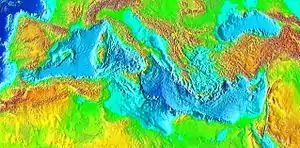Mostre de sedimente adunate din forajele la mare adâncime în Marea Mediterană, incluzând minerale evaporite, soluri și plante fosilizate, arată că, cu aproximativ 5,9 milioane de ani în urmă, în Miocenul târziu, Strâmtoarea Gibraltar s-a închis iar Marea Mediterană, izolată de Oceanul Atlantic, s-a evaporat. În locul ei s-a format un bazin uscat, cu adâncimi de până la 3,2 - 4,9 km sub nivelul oceanului. Fenomenul a avut loc datorită faptului că Marea Mediterană are o rată de evaporare foarte ridicată și depinde de apele Atlanticului pentru a-i furniza deficitul de apă pierdută prin evaporare. Din acest motiv ea este și mult mai sărată decât Oceanul Atlantic.