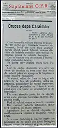 - Gh. Cărare: Monumentul Eroilor de pe Muntele Caraiman, în „Săptămâna CFR” - Anul IV, nr. 17 / Duminică 26 septembrie 1943