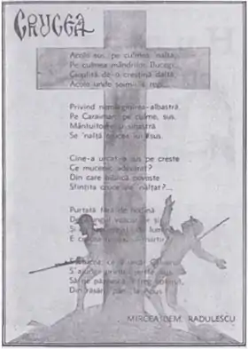 „... îndeobște ele stau la marginea drumului, uneori în singurătate impunătoare; uneori în grupe; uneori sunt din piatră ciudat săpată; uneori sunt de lemn, crud zugrăvite de figuri de sfinți arhaici. Fără îndoială aceste pioase monumente au fost înălțate ca să însemne locurile unde s-a petrecut ceva: poate moartea vreunui erou sau numai omorul unui singuratec călător care nu era menit să ajungă la capătul drumului său. De cele mai multe ori stau lângă puțuri, purtând numele acelora cari, gândindu-se la drumeții setoși, au ridicat aceste mijloace de adăpat în locuri depărtate. Ciudate la făptură, ele atrag ochiul de departe; țăranul își descoperă fruntea înaintea lor, șoptind o rugăciune pentru morți. La răscruci, am dat uneori peste dânsele strânse câte zece supt un coperiș; când se află în așa de mare număr, sunt cioplite din lemn. Formele și mărimea lor sunt felurite: unele sunt grozav de zdravene, acoperite original cu șindilă; adesea desenul lor e încurcat, și mai multe cruci, ieșind una din alta, fac o alcătuire curioasă, zugrăvită peste tot cu colorile cele mai tari, pe carele soarele și ploaia răpede le îndulcesc spre o plăcută armonie. Ocrotite de tovarășele lor mai mari, multe cruciulițe se grămădesc alături: cruci rotunde și cruci pătrate, cruci care sunt supțirele și drepte, cruci care par a se pleca smerit spre pământ... Pe drumuri singuratece aceste dovezi rustice de credință au un farmec ciudat. Te miri ce dorinți s-au ridicat când ele au fost puse acolo de mâni evlavioase și de inimi care credeau... Dar, mai presus de toate, crucile de piatră săpată mă ispitesc. Le-am descoperit în tot felul de locuri: unele sunt de o rară frumuseță, acoperite cu inscripții care șerpuiesc în minunate desenuri. Am dat de ele pe câmpii pustii, pe margeni de drumuri prăfoase, la capătul pădurilor întunecate, pe singuratece cline de munte. Le-am aflat pe ape pierdute lângă Mare, unde porumbeii valurilor se rotiau în jurul lor, desmierdându-le ușor cu vârful aripilor. Multe leghi de cale am călărit ca să am alt punct de vedere asupra acestor simbole misterioase, pentru că ele-mi umplu sufletul totdeauna cu o puternică dorință de liniște; ele sunt așa de solemn impresionante, așa de tăcute, așa de liniștite.... Una mai ales mi-a fost scumpă inimii. Stătea singură singurică într-o singurătate demnă, pe un câmp gol, privind amenințător la un smoc de scai cari-și suciau tulpinele spinoase în umbra brațelor ei. Nu-i știam povestea, nici de ce păzia la un loc așa de singuratec; pare că fusese acolo de la însuși faptul vremii.. Obosită de zădarnica veghere, se apleca ușor într-o parte, și în amurg umbra-i sămăna straniu cu umbra unui om...”[2]