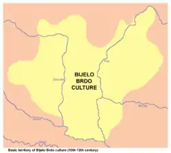 Conform arheologului rus Valentin Vasilievici Sedov, teritoriul culturii Bijelo Brdo include părți din Ungaria, sudul Slovaciei și din Voivodina.[1]