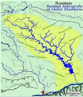 După cum se știe, izvorul Mostiștei se află în localitatea Dascălul. Râul are șapte afluenți: patru pe partea stângă, râul Valea Livezilor, Colceag, Vânăta și Argova, și doi pe partea dreaptă: Belciugatele și Corâta.[12][13]