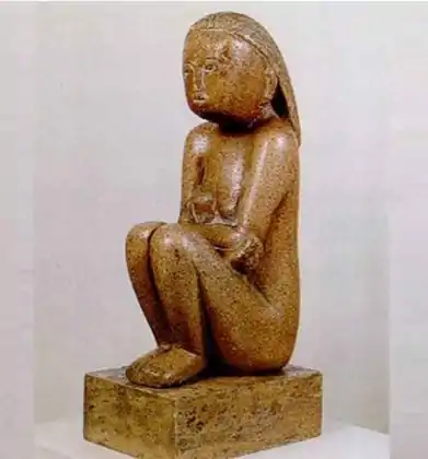 Lucrarea reprezintă o mică făptură, dezbrăcată care stă așezată cu genunchii strânși și cu brațele împreunate sub sâni. Liniile spatelui, ale șezutului și picioarelor au o dulceață aparte a neștiinței de sine. Privirea este dulce dar inexpresivă, pierdută în același timp, prin urmare, are, în plinătatea aceasta de societate haotică, ceva inexprimabil. Figura nu are nimic sofisticat: o frunte înaltă și o gură schițată parcă în grabă, făcută pentru a tăcea. Detaliile sculpturale sunt vagi,chipul este abia schițat. Dialogul statuii cu exteriorul nu explică drama venirii ei pe lume. Din atitudinea statuii se degajă un sentiment de atașament față de pământul mamă.[4]