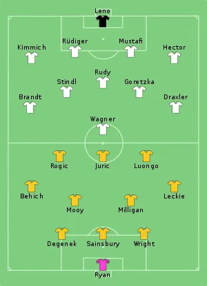 18 iunie 2017 . Arhivat din original la27 martie 2019 . Accesat în18 iunie 2017 . - „Tactical Line-up – Group B – Australia - Germany” (PDF). FIFA.com. Fédération Internationale de Football Association.