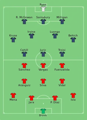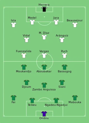 12 iulie 2017 . Accesat în18 iunie 2017 . - „Tactical Line-up – Group B – Cameroon - Chile” (PDF). FIFA.com. Fédération Internationale de Football Association.