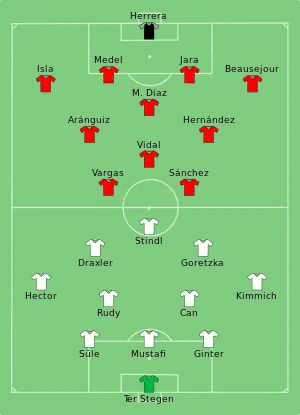 22 iunie 2017 . Arhivat din original la27 martie 2019 . Accesat în22 iunie 2017 . - „Tactical Line-up – Group B – Germany - Chile” (PDF). FIFA.com. Fédération Internationale de Football Association.
