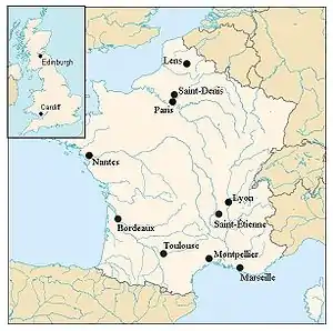 | Saint-Étienne | Stade Geoffroy-Guichard | 35.650 | Arhivat în , la Wayback Machine. |