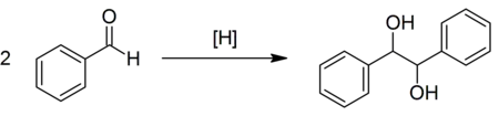 Pentru benzaldehidă, cuplarea pinacolică ia următoarea formă: