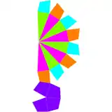 | Dualul cupolei pătrate alungite | Desfășurata dualului |