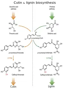 - Holloway, PJ (1982). "The chemical constitution of plant cutins". In Cutler, DF, Alvin, KL and Price, CE (1982) The Plant Cuticle. Academic Press London, pp 45–85.
