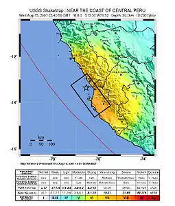 |date=(ajutor) - „Magnitude 8.0 - NEAR THE COAST OF CENTRAL PERU”. USGS. Accesat în .