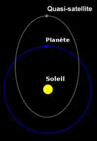 Cvasisateliții sunt o soluție particulară a problemei astronomice a sistemelor cu trei corpuri. Ea privește, prin urmare, două obiecte aflate în revoluție în jurul unui al treilea corp mai masiv (în general o planetă și un asteroid în jurul unei stele), dar care face, totuși, același timp pentru a-și parcurge orbita (rezonanță orbitală 1 :1).
