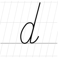 Litera Dd scrisă cu fontul „School Script Dashed”.