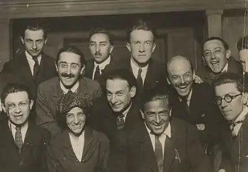 Grup de dadaiști, 1920, Paris. De la stânga la dreapta sunt, în rândul din spate, Louis Aragon, Theodore Fraenkel, Paul Eluard, Clément Pansaers, Emmanuel Fay (parțial).