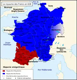 Domnia lui Clovis (481-511) a stabilit dominația francilor asupra celei mai mari părți a Galiei ex-romane. La moartea lui Clovis, regatul este împărțit între cei patru fii ai săi, apoi reunificat în jurul anului 555, extins cu Burgundia[n 4], de către Chlothar I.