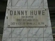 Danny Huwé (n. 1 decembrie 1943, Geraardsbergen, Belgia – d. 24 decembrie 1989, București) a fost un jurnalist belgian angajat la postul de televiziune WTM. Huwé venise la București cu echipa sa din Sofia, Bulgaria, pentru a transmite reportaje despre revoluția română. Jurnalistul a fost împușcat în cap de un lunetist în aceeași seară. În locul în care a decedat, zona Răzoare din Drumul Taberei, a fost construit un monument în memoria sa, la intersecția bulevardelor Drumul Taberei, Geniului și Timișoara. De asemenea, stațiile RATB din zonă au fost redenumite după numele jurnalistului belgian.