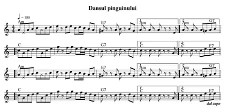 - Lecție video – „Dansul pinguinului” la sintetizator (în mi minor), pe site-ul YouTube