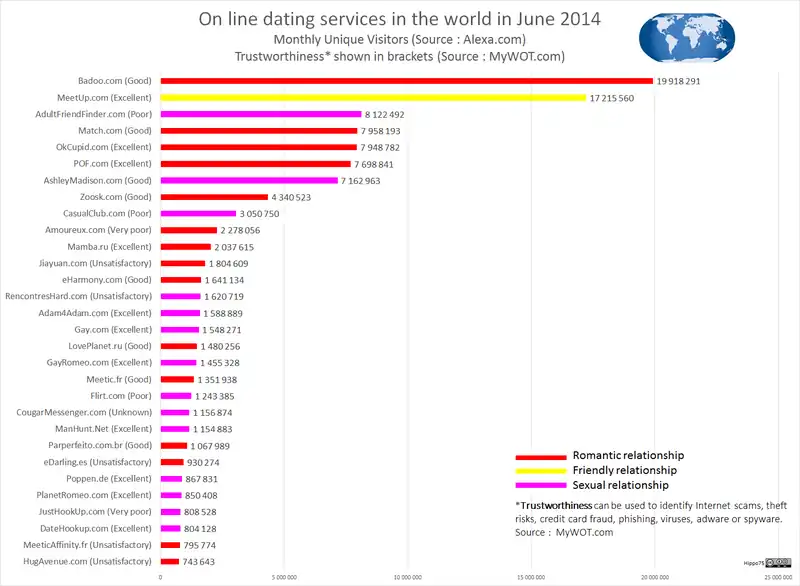 Majoritatea site-urilor sunt generaliste, adunând membri din diferite medii sociale și culturale, în căutare de diferite tipuri de relații. Alte site-uri sunt specializate, bazându-se pe adunarea membrilor cu aceleași interese, din aceleași locații sau cu aceleași cerințe privind tipul de relație dorită.