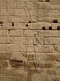 Telieful triumfal al lui Shoshenq I lângă Portalul bubastit de la Karnak, înfățișând zeul Amun-Re primind o listă de orașe și sate cucerite de rege în campaniile sale militare din Orientul Apropiat.
