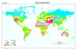 Deșertificarea este un fenomen complex de transformare treptată a unor terenuri cu soluri fertile în deșerturi, determinat de schimbările climatice (secetă puternică și prelungită) și activitățile umane (supraexploatarea terenurilor).[1][2]
